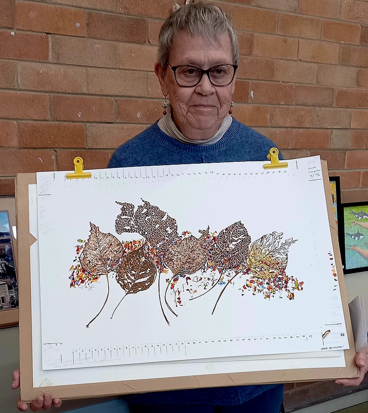 Jennifer MacLaine-Cross with her watercolour painting of leaves